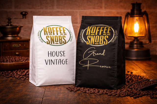 Koffee Snobs specializes in roasted-to-order coffee for discerning home brewers. From our Grand Reserve to House Vintage blends, every batch is freshly crafted for your machine.